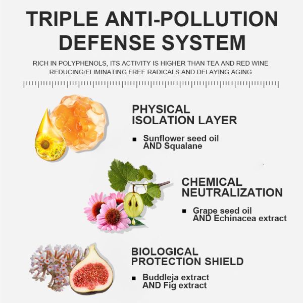 Intelligent anti-pollution barrier: Innovative nano-wrapping technology forms a breathable protective film on the skin surface, actively blocks environmental damage such as PM2.5, heavy metals, blue light, and truly achieves "anti-pollution".